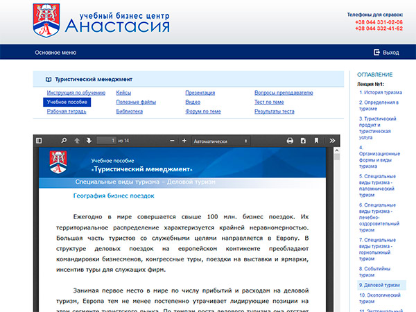 На практичних заняттях слухачі навчаються працювати з документами, що використовуються у всіх туристичних агентствах: агентський договір, договір на туристичне обслуговування (з туристом), заявка на бронювання туру, прибутковий касовий ордер (прийом готівки від клієнта). Слухачі навчаються підбирати тур для клієнта у спеціальній комп'ютерній програмі, працювати з турооператором. У навчання на курсах туризму входить вивчення «читання» ваучерів, авіаквитків, віз. Розглядаються питання оформлення закордонних паспортів, віз та інших проїзних документів. Також на заняттях розглядаються питання взаємодії туроператора та турагента, варіанти складання та правила укладання договорів рецептивного та ініціативного туроператорів, договорів з готелями, авіакомпаніями, АТП, ресторанами. Організація екскурсійного обслуговування. Наводяться всі розрахунки турів, схеми туристичних та екскурсійних маршрутів, відкриваються тонкощі роботи з клінтами (успішний продаж турів). Після закінчення курсу видається диплом та заявки на роботу. |